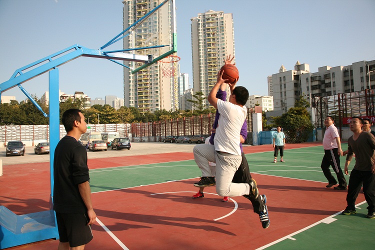 下午2時(shí),來自公司各部門、龍華分公司、天鵝公司、監(jiān)理公司組成的籃球、女子乒乓球隊(duì)員、啦啦隊(duì)列隊(duì)進(jìn)入籃球場。在公司領(lǐng)導(dǎo)簡短致詞和裁判長宣布比賽規(guī)則后,丁曉東董事長做迎新年講話并宣布比賽開始,正式拉開賽事帷幕。各路隊(duì)員分成A、B兩個(gè)賽區(qū)展開激烈的循環(huán)賽。A區(qū)首場比賽在“精英隊(duì)”(辦公室隊(duì))與天才隊(duì)(天鵝公司、財(cái)務(wù)部聯(lián)隊(duì))之間展開。“精英隊(duì)”在3名隊(duì)員年齡大的情況下,有著籃球功底的鄭月英展示出一名后衛(wèi)的實(shí)力,接球、分球、組織進(jìn)攻步步到位,隊(duì)員拼搶積極,配合默契,比賽一開始讓“天才隊(duì)”難以接招,但“天才隊(duì)”不甘示弱,雙方比分交替上升,難分伯仲。由于“精英隊(duì)”缺少替補(bǔ),隊(duì)員體力不支,最終敗下陣來,晉級機(jī)會渺茫。最為激烈的是冠軍爭奪戰(zhàn)。A、B組兩隊(duì)勁旅在決賽中相遇,丁曉東帶領(lǐng)的“成功隊(duì)”(成本、工程管理部聯(lián)隊(duì)),對陣巫石明帶領(lǐng)的“烏龍隊(duì)”(龍華分公司隊(duì)),稍占上風(fēng)的“烏龍隊(duì)”一路領(lǐng)先,“成功隊(duì)”緊跟其后,在最后關(guān)頭,“成功隊(duì)”采取盯人戰(zhàn)術(shù),搶斷反攻,把比分追成10比10平局。整場比賽15分鐘時(shí)間很快結(jié)束,當(dāng)比賽離終場還剩下最后十幾秒鐘時(shí),“成功隊(duì)”隊(duì)員不幸折將離場,比賽不得不采取投籃決勝負(fù)的方式,結(jié)果“成功隊(duì)”惜敗,屈居亞軍。