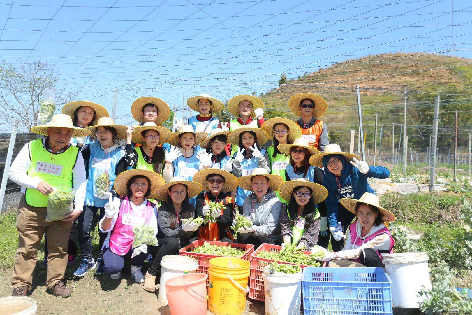 基地套種了佛手瓜和荷蘭豆兩種作物。李白村駐村工作隊黃勝鵬隊長一邊為大家解說間作種植的周期,一邊帶領公益小組在田地里真正地接地氣----采摘、選良、裝袋,搬箱……頭戴蓑笠,腳踏泥濘,認真細致,公益小組體驗了一回深耕易耨的勞作。