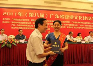 集團位列“2010年度廣東省企業(yè)文化建設(shè)十佳單位”首位,劉愛群、林嬋波分獲“2010年度廣東省企業(yè)文化建設(shè)十佳先進個人、企業(yè)文化管理先進個人”稱號