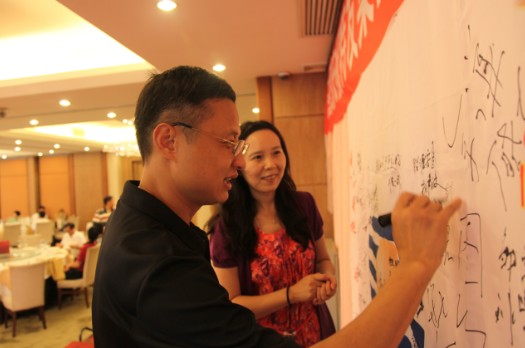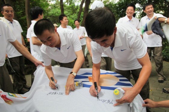登山開始了,大家隨意分成一隊隊,沿著山路臺階拾級而上,穿行在青山綠樹間,吮吸著夾帶泥土味的新鮮空氣,邊輕松行走,邊交流工作心得,談笑間便來到了臨近山頂?shù)男蓓脚_。一面印有特發(fā)核心價值觀“全員職業(yè)化,成就美好生活”的司旗早已擺放好在石桌上,等候大家簽名祝福。劉愛群董事長率先提筆寫下“特發(fā)的明天更美好”的祝福語,深情表達特發(fā)人對美好未來的熱切期盼。陸續(xù)登上平臺的特發(fā)人紛紛留下自己對特發(fā)集團的美好心愿和祝福:“大展宏圖”、“正是特發(fā)三十年,創(chuàng)業(yè)當趁好時光”、“明天風景更好”、“特發(fā)集團,一飛沖天”、“祝愿特發(fā),三十而立,輝煌再現(xiàn)”……共同祝愿特發(fā)集團在“全員職業(yè)化,成就美好生活”核心價值觀的引領下,在未來的發(fā)展道路上闊步前進,基業(yè)長青!