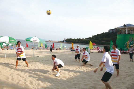 這是一場(chǎng)別開(kāi)生面的運(yùn)動(dòng)會(huì),更是一場(chǎng)歡樂(lè)的聚會(huì)。比賽正式開(kāi)始。首先進(jìn)行的項(xiàng)目是沙灘排球賽。比賽經(jīng)抽簽分成兩組:公司一隊(duì)對(duì)陣公司二隊(duì),企業(yè)一隊(duì)對(duì)陣企業(yè)二隊(duì)。運(yùn)動(dòng)員們盡力施展拿手球技:上手飄球,飛身墊球,魚躍救球……靈活的步伐,密切的配合,高超的球技,好一幅生龍活虎的競(jìng)賽畫卷,不禁使人頓覺(jué)排球飛處硝煙彌漫。經(jīng)過(guò)激烈較量,公司一隊(duì)和企業(yè)二隊(duì)分別以2:0戰(zhàn)勝小組對(duì)手進(jìn)入決賽。正是“棋逢對(duì)手,將遇良才”。公司一隊(duì)可謂是團(tuán)結(jié)和諧、經(jīng)驗(yàn)豐富、作風(fēng)嚴(yán)謹(jǐn)、敢打敢拼;企業(yè)二隊(duì)則是特別能吃苦、特別能戰(zhàn)斗,意志頑強(qiáng)、作風(fēng)硬朗。決賽精彩紛呈,競(jìng)爭(zhēng)激烈。賽場(chǎng)上運(yùn)動(dòng)員全力以赴、奮勇拼搏,賽場(chǎng)外觀眾連連拍手叫好。企業(yè)二隊(duì)雖然屢有扭轉(zhuǎn)乾坤、力挽狂瀾之好球,但最終還是不敵素有“王牌之師”稱號(hào)的公司一隊(duì)。公司一隊(duì)?wèi){借實(shí)力獨(dú)占鰲頭。