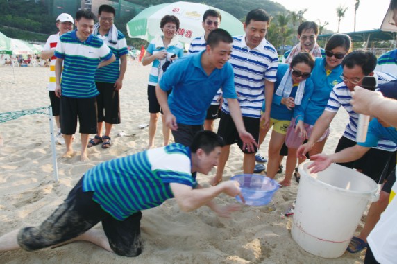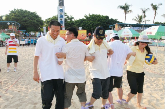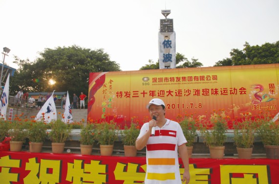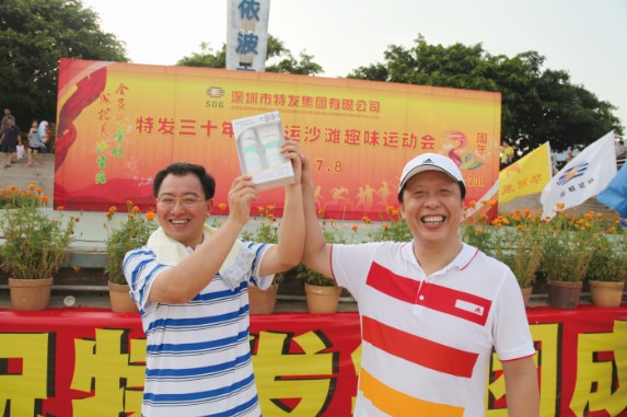 7月8日,特發(fā)小梅沙旅游中心裝扮一新,司旗彩旗迎風(fēng)飄揚(yáng),五彩鮮花競(jìng)相綻放,“熱烈慶祝特發(fā)集團(tuán)成立30周年”等祝福語(yǔ)在小梅沙酒店門口的LED大屏幕上不停滾動(dòng),到處彌漫著祥和歡樂(lè)的氣氛。下午4:30,特發(fā)30年迎大運(yùn)沙灘趣味運(yùn)動(dòng)會(huì)在美麗的小梅沙海灘拉開(kāi)帷幕。集團(tuán)總部全體員工、全資控股企業(yè)班子成員及財(cái)務(wù)負(fù)責(zé)人、參股企業(yè)特發(fā)方產(chǎn)權(quán)代表參加運(yùn)動(dòng)會(huì)。運(yùn)動(dòng)會(huì)安排了沙灘排球、步調(diào)一致和障礙接力3個(gè)項(xiàng)目;根據(jù)人數(shù)對(duì)等的原則,運(yùn)動(dòng)員分成4支參賽隊(duì)伍,即:由集團(tuán)公司領(lǐng)導(dǎo)和部門領(lǐng)導(dǎo)組成的公司一隊(duì);由集團(tuán)公司各部門員工組成的公司二隊(duì);由特發(fā)信息、小梅沙旅游中心、特發(fā)物業(yè)3家企業(yè)組成的企業(yè)一隊(duì);由特力集團(tuán)、香蜜湖度假村、黎明集團(tuán)、高爾夫、華麗公司、華明公司組成的企業(yè)二隊(duì)。