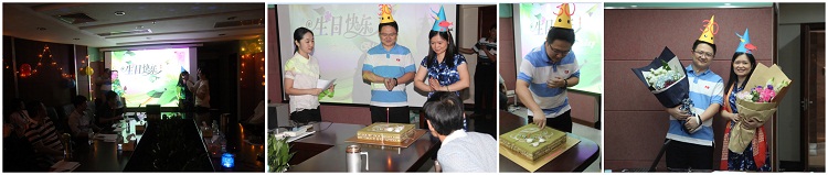 正當(dāng)活動走向高潮之際,在集團(tuán)領(lǐng)導(dǎo)的關(guān)心和主持人的精心策劃與組織下,本期的員工之星還為總部8月份生日的員工準(zhǔn)備了一份別出心裁的意外驚喜——首場集體生日party。當(dāng)熟悉而美妙的“祝你生日快樂……”歌曲響起,集團(tuán)八月份壽星肖鵬、張小愉(王娟因休假未能參加)被熱情與幸福包圍著走上講臺,臉上洋溢著難以言表的喜悅。大家圍在壽星旁,齊唱生日歌,壽星們閉著雙眼,無比激動地許下了生日愿望。緊接著,切蛋糕、送鮮花、抽大獎(jiǎng)、送祝福等精彩環(huán)節(jié)更是把現(xiàn)場氣氛一次次推向高潮。整個(gè)會場生動活潑,歌聲陣陣,笑語連連,所有的祝福和問候早已注入“特發(fā)”人的心湖,大家其樂融融,幸?M繞其間……