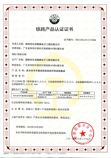 特發(fā)黎明長龍公司獲國家級CRCC及行政許可雙認證證書