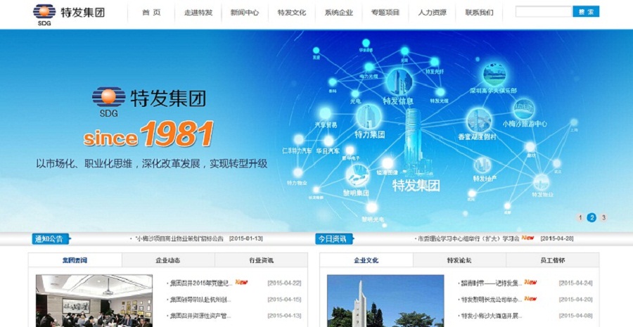 集團(tuán)新版網(wǎng)站保留了原網(wǎng)站的部分功能元素,并在學(xué)習(xí)借鑒市國資系統(tǒng)兄弟單位門戶網(wǎng)站建設(shè)成果,以及充分征求集團(tuán)領(lǐng)導(dǎo)、總部各部室、網(wǎng)站開發(fā)商意見建議的基礎(chǔ)上,根據(jù)集團(tuán)經(jīng)營管理、業(yè)務(wù)宣傳、文化建設(shè)等需要,重點(diǎn)對網(wǎng)站的欄目設(shè)置、業(yè)務(wù)功能和頁面布局進(jìn)行了調(diào)整優(yōu)化。欄目設(shè)置方面,調(diào)整為8個(gè)一級(jí)欄目和23個(gè)二級(jí)欄目,主要板塊包括:走進(jìn)特發(fā)、新聞中心、特發(fā)文化、系統(tǒng)企業(yè)、專題項(xiàng)目和人力資源等,欄目內(nèi)容較以往更豐富、實(shí)用。業(yè)務(wù)功能方面,重點(diǎn)增加了重大項(xiàng)目展示、人力資源信息發(fā)布和部分二級(jí)欄目功能,網(wǎng)站整體功能較以往更健全。頁面布局方面,重點(diǎn)對導(dǎo)航鏈接端口位置、主圖展示區(qū)圖片、新聞?wù)故緟^(qū)區(qū)域設(shè)置和展示內(nèi)容等進(jìn)行了調(diào)整,形成了結(jié)構(gòu)更清晰、層次更分明、重點(diǎn)更突出、操作更便捷、特發(fā)元素更豐富的全新頁面布局。