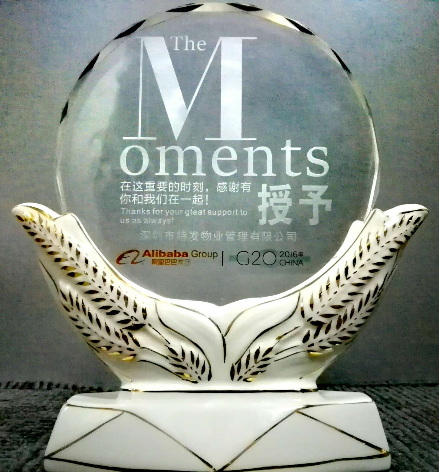 在獎(jiǎng)杯上刻有一句話:“在這個(gè)重要的時(shí)刻,感謝有你和我們?cè)谝黄稹薄_@是阿里巴巴集團(tuán)對(duì)我們團(tuán)隊(duì)的高度肯定,也是對(duì)我們的信任。相信有了這一次的并肩作戰(zhàn),未來我們會(huì)再接再厲和阿里在公共事務(wù)接待上共同奮斗。未來可能還會(huì)有更多更艱難的任務(wù),我們將繼續(xù)追求卓越,讓特發(fā)服務(wù)成為每個(gè)客戶心中的驕傲。