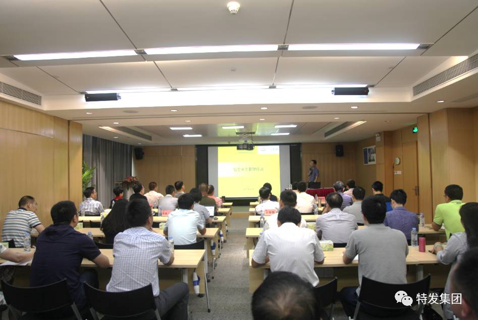 日前,特發(fā)集團邀請深圳市康達信管理顧問有限公司副總經(jīng)理曹建華博士在國際創(chuàng)新中心舉行了一場信息安全培訓。特發(fā)集團張俊林董事長、桂自強副總經(jīng)理、各部門負責人及業(yè)務相關人員參加了本次活動。