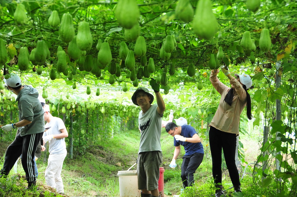 5月11日上午,團員青年一行抵達李白村,開展為期半天的“助力精準扶貧”主題團日及志愿服務(wù)活動,以實際行動助力集團脫貧攻堅。團員青年一行首先來到佛手瓜種植示范園,佛手瓜正值豐產(chǎn)期,長勢喜人,已形成日均產(chǎn)、銷超萬斤的規(guī)模。集團駐李白村工作隊隊長溫文裕欣喜地向大家介紹了佛手瓜產(chǎn)業(yè)園的規(guī)模及產(chǎn)銷情況,并帶領(lǐng)大家深入基地進行田間勞作體驗。除草、采摘、打葉、搬運……大家頭頂綠蔭,腳踏泥濘,認真細致,沒有半刻偷閑。隨后,在駐村工作隊江福如副隊長的帶領(lǐng)和介紹下,全體人員沿途參觀了集團精準扶貧項目成果——水渠、路燈、村道、李白村小學(xué)及即將建成的村民服務(wù)中心和文化廣場……在集團近3年的精準、精心幫扶下,李白村村容村貌得到了較大改善,村民生活水平不斷提高。通過零距離接觸、體驗、了解扶貧項目,團員青年們的社會責(zé)任與擔(dān)當(dāng)?shù)玫綇娀?br />