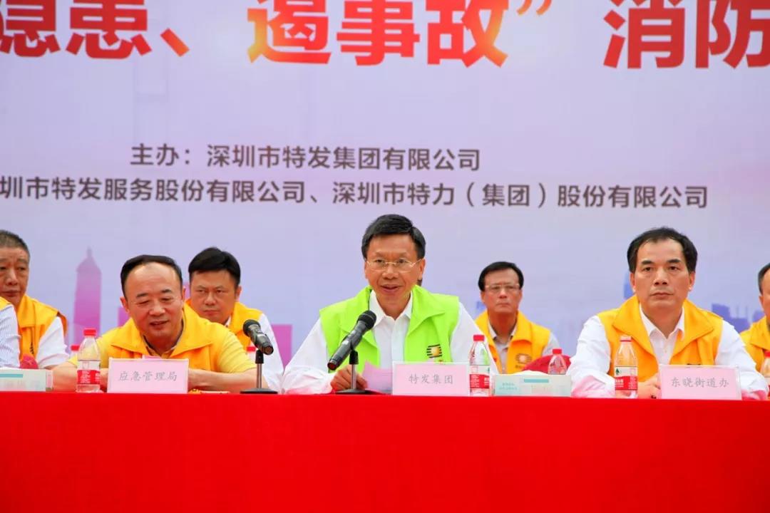 為配合119消防宣傳月,切實(shí)加強(qiáng)特發(fā)集團(tuán)安全管理工作,檢驗(yàn)集團(tuán)突發(fā)事件的應(yīng)急處置能力及各單位的聯(lián)動(dòng)處置水平,11月18日下午,由特發(fā)集團(tuán)公司主辦,特發(fā)服務(wù)、特力集團(tuán)承辦的消防聯(lián)合演習(xí)在布心工業(yè)區(qū)舉行,集團(tuán)總裁高天亮和羅湖區(qū)應(yīng)急管理局、住建局、東曉街道、派出所、消防中隊(duì)等單位領(lǐng)導(dǎo)出席,布心工業(yè)區(qū)20多個(gè)單位400多人參與演習(xí)。特發(fā)服務(wù)泊林花園管理處、珠寶園分公司、坂田分公司組成聯(lián)動(dòng)應(yīng)急救援分隊(duì)到場支援。