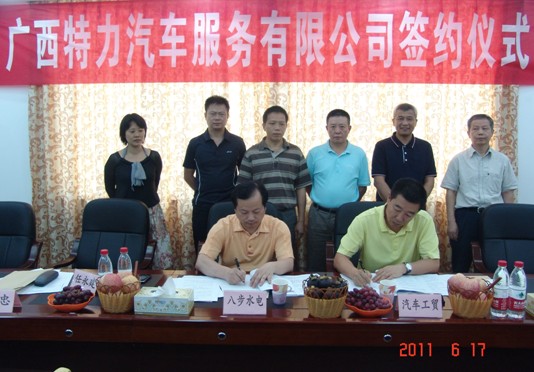發(fā)布日期:2011/8/20 12:00:21 | 瀏覽次數(shù):5550 來源:特力集團汽車事業(yè)部 張靈2011年6月17日,特力集團下屬全資子公司深圳市汽車工業(yè)貿易總公司與廣西桂東電力下屬全資子公司賀州市八步水利電業(yè)有限責任公司共同出資成立的廣西特力汽車服務有限公司正式在賀州市掛牌成立。特力集團張瑞理董事長與桂東電力授權代表黎智強總經理簽署了《廣西特力汽車服務有限公司合作協(xié)議》并揭牌。