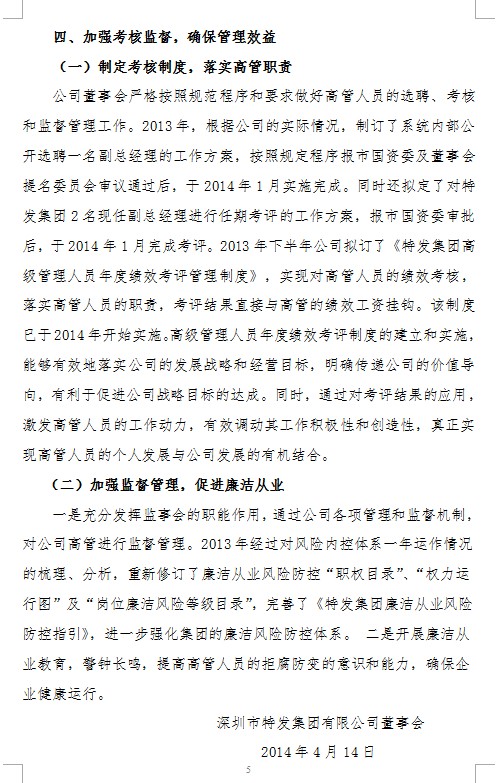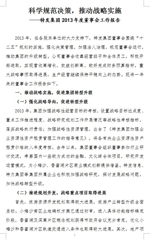 科學規(guī)范決策,推動戰(zhàn)略實施——特發(fā)集團2013年度董事會工作報告